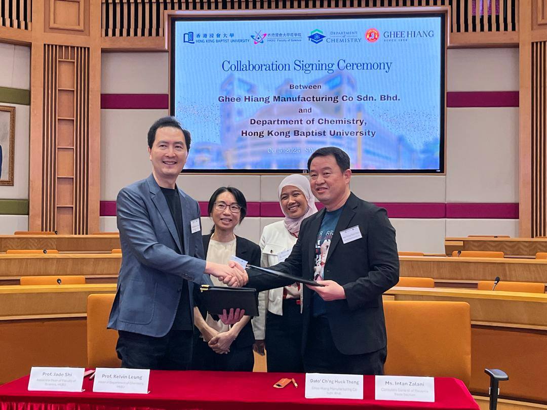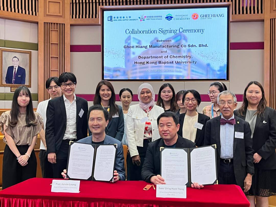 On 21 October 2025, Ghee Hiang signed a research collaboration agreement with the Department of Chemistry, Hong Kong Baptist University (HKBU), marking an important step in our ongoing commitment to innovation through academia–industry collaboration. The agreement was signed by Professor Kelvin Leung, Head of the Department of Chemistry, HKBU, and Dato’ Ch’ng Huck Theng, Executive Director of Ghee Hiang.